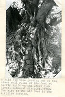 Caption: "A wild fig tree growing out of the stone wall ruins of the fort at Kaffir Drift on the Great Fish River, Bathurst district. 1982. The site of the old fort is now a police station." -
