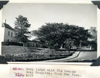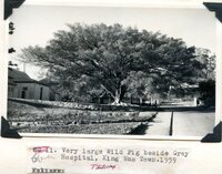 Caption: "Very large wild fig beside Grey Hospital. King Wms Town. 1959." -