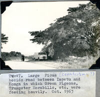 Caption: "Large Ficus beside road between Impetu and Komga n which green pigeons, trumpeter hornbills, etc. were feeding heavily. Oct. 1963." -
