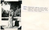 Caption: "Congealed aerial roots of a Wild Fig tree outside Deeds Office, Alexandra road, King Williams Town. 1959." -