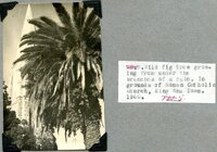 Caption: "Wild fig tree growing from under the branches of a palm. In grounds of Roman Catholic church, King Williams Town. 1960." -