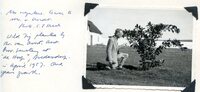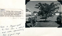 Caption: "Gerry Broekhuysen kneeling beside the fig tree planted by Mr. van Oordt at De Hoop. Sept. 1961. Seen in August 1988 this tree was a robust and wide-spreading tree of good size." -
