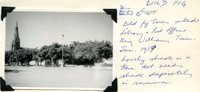 Caption: "Wild fig trees next to the Library and Post Office, King Williams Town. Jan. 1959. Lovely shade in a town that needs shade desperately in summer."