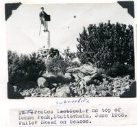 Caption: "Protea subvestita on top of Dohne Peak, Stutterheim. June 1963. Walter Skead on beacon." -