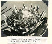 Caption: "Protea cynaroides. Grahamstown. July 1962." -