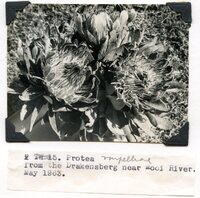 Caption: "Protea roupelliae on slopes of southern Drakensberg above Elliot. c.1933. Photo Syd Coutts." -