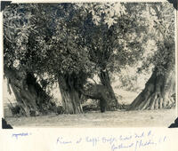 Caption: "Beneath the Ficus tree at Kaffir drift on the Great Fish River, showing the four trunks. 5/9/1961." -