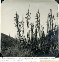 Caption reads: "Red Watsonia on top of Hogsback, near Kettlespout Falls, end December 1947." -