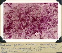 Caption reads: "Red and yellow colour varieties of Tecomaria capensis. Marme Glen, East London. August 1958." -