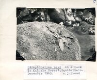 Caption reads: "Streptocarpus rexi on a rock in Kologha Forest, Stutterheim. December 1960."