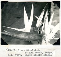 Caption reads: "Giant Strelitzia at Kei Mouth, Komga. Oct. 1963. Showing sticky stigma." -