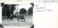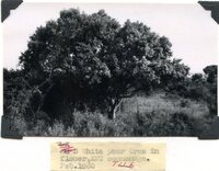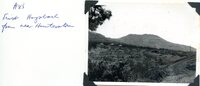 Caption: "Pinus insignia, the lone tree on top of Beaford Mountain, behind the town. This tree is visible from Kroomie near Fort Beaufort. Planted by Mr. (illegible) in (not date entered). He planted several species of pine here but only this tree survived. A few saplings are now coming up below it. June 1958." -