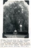 Caption: "Pepper-tree in the grounds of 'Lynedoch' farm garden, Bavian's River Valley. Said to have been the first pepper tree introduced into South Africa. June 1962." -