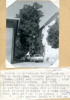 Caption "Common or Outeniqua Yellowwood in Deanery Lane between St George's House left, and Hunt's Garage, High Street, Grahamstown. May 1977. A substantial tree with no provenance as yet but obviously fairly old. Has been allowed to remain by a wise public. Bole diameter at 1 m. from ground = 838 mm at ground leverl = 1 168 mm." -