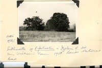 Caption: "Kaffir plum trees with tops bent over by the prevailing wind from the sea just west of Igoda R. on road to Kidds Beach from East London. The land around them had recently been cleared of surrounding sand above which the canopies of the Kaffir-plum protruded (see below). The trunks must have grown straight to the light and then been bent when growing above the surrounding bush canopy. Aug. 1958." -