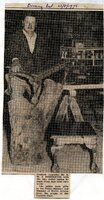 Caption "Cradock carpenter Mr A. W. J Robbertze with the two coffee tables he made from rare wild olive wood. The tables were gifts to the Prime Minister of Water Affairs from the people of the Eastern Cape. Evening Post 23-08-1975" -