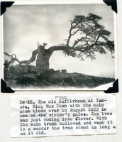 Caption "The old kaffirboom at Tamara, King Wms Town. with the main stem blown over in August 1963 a winter's gale. The tree was just coming into flower. With the main trnk hollowed and weak it is a wonder the tree stood as long as it did." -