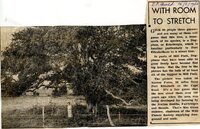 Caption "With Room to Stretch. Give 30 people three guesses and not many of them will guess that this tree a mammoth of its species, is a Dogplum, or Eckebergia, which is particularly familier to Port Elizabethans as a street tree. In parts of Mill Park, Dogplums that have been able to grow freely have become fine big trees. But the tree in the picture has the bulk of at least six of the biggest Mill Park. The picture was taken on Nocton Farm, 39 miles from Port Elizabeth on the Cape Road. It's a fair guess that the tree stood there over 100 years ago when the area was being developed for farming by the Conton Smiths, Fairbridges and Skeads. That's Mrs Gwen Skinner, chairman of the Wild Flower Society supplying foreground and scale. E.P. Herald. 15-06-1966" -