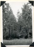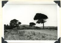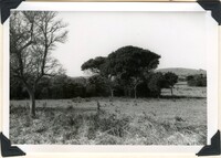 Caption "Kaffir-plum trees with top bent over by the prevailing wind from the sea just west of Igoda R. on road to Kidds Beach from East London. The land around them had recently been cleared of surround bush above which the canopy of the Kaffir-plum protected, see below. The trunk must have grown up straight to the light and then been bent when growing above the surrounding bush canopy. Aug. 1958." -
