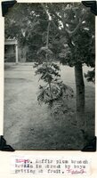 Caption "Kaffir Plum branch broken in street by boys getting at fruit." -