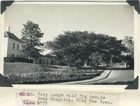 Caption "Very large Wild fig beside Grey Hospital. King Wms Town. 1959." -