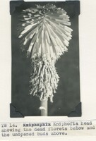 Caption "Kniphofia head showing dead florets below and the unopened buds above." -