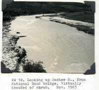Caption "EW 10. Looking up Bashee R., from National Road bridge. Virtually denuded of shrub. Nov. 1963." -