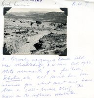 Caption "EW 8. Grossly overgrazed Bantu veld near Middeldrift, K.W. Town. Oct 1962. Note remnants of a few trees Schotia, etc. All [*] has been removed from what must have been a well-barked kloof. The grass on the influves overeaten. " -