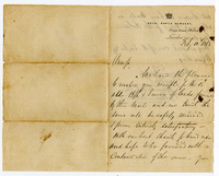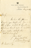 Jardine Correspondence transcribed by Jean Kelly August 2021. Transcription: Graham’s Town. May 1st 1864. [No salutation.] As I intend returning to England by the Mail Steamer which will leave Table Bay on the 20th June, I shall be much obliged to you, Walter, if you will plant the Ferns you have for me in a Wardian Case ready for their journey. I think they had better be put into the Wardian Case at once so that they may have taken good root before the time comes for closing the case. The case need not be closed till after I come down to Cape Town I expect to be there about the 13th or 14th of June. The last batch of Ferns I sent home were planted in rows, with thin boards laid along the top between the rows to keep the soil unmoved; and they reached home in very good order. I also want to take the Disa plants home with me. I am told that if they have died down, the bulbs had better be packed in dry sand; but if they have not died down, &* are still in leaf, they had better be planted in the case with the Ferns. If you have not got Wardian Case, which you can let me have, please ask Col. Travers to get one from Mr McGibbon at the Botanical Garden. Keep an account of any expenses you may incur, and I will repay you when I come down to Cape Town. I shall also be very much obliged if you could send me here some good Disa plants for the Botanical Gardens in this town, where they are very much wanted. They had better be packed in moss or dry sand, & put into a tin box, and then sent up by the post cart. If you should not be able to do this, or have any difficulties with respect to the Ferns, please write to let me know at once. Yours faithfully, Edmund R Wodehouse. Envelope addressed to: Mr Walter Jardine The Vineyard Claremont Cape Town. Pencilled note on envelope: Son of the Governor, Sir P Wodehouse.