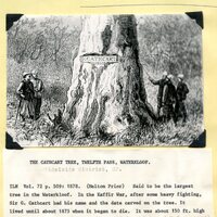 - Original caption "ILN Vol. 72 p, 509: 1878. (Melton Prior) Said to be the largest tree in the Waterkloof. In the Kaffir War, after some heavy fighting, Sir G. Cathcart had his name and the date carved on the tree. It lived until about 1875 when it began to die. It was about 150 ft. high and 29 ft. in circumference (i.e. 45.6 m high and 8.8 m round)."