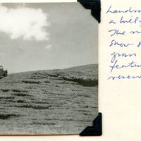 - Caption "Landrover climbing a hill. The ridges are snow stripes in the grass - a common feature in the reserve. Oct. 1958."