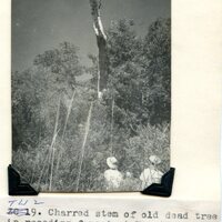 - Caption "TW 2. Charred stem of old dead tree in receding forest at Nqantos are, Upper Kubusie, Stutterheim. 1959. The figures are 6 ft. tall so the fire must have swept about 25 ft. up the stem. 1959."