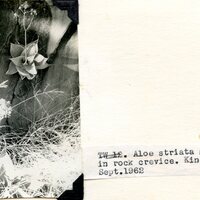 - Caption: "Aloe striata growing in rock crevice. King Wms Town. Sept. 1962."