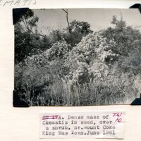 - Caption: "Dense mass of Clematis in seed, over a shrub. Mount Coke, King Wms Town. June 1961."