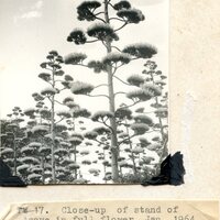 - Caption: "Close-up of stand of Agave in full flower. Jan. 1964. When the photo was taken the flowers were full of nectar."