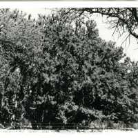 - Caption: "The Wonderboom, Ficus pretoriae, north of Pretoria. April 1965. The central parent trunk was 12 ½ feet in diameter. The secondary growth consists of 7 separate daughter groups but two of these form grand-daughters which form a third circle around the central parent. The whole canopy is given as about 165 feet in diameter, and about 75 feet high. The measurements were 186 feet. The mother tree consists of 5 close-growing stems and her canopy is about 99 feet overall. A notice at the site says that this tree was probably able to develop in this way through being held sacred and dedicated by burial to a chief and then given tribal protection. Although it is large overall it attains this by virtue of the daughter and grand-daughters groups. The fig tree at Kaffir drift has 5 central stems and no daughter groups. It is about 168 feet in diameter of canopy, i.e. without the secondary groups. The big fig tree in Bathurst village has only one central stem yet its canopy diameter is 162 feet in diameter, i.e. from one stem."