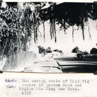 - Caption: "The aerial roots of Wild fig corner of Queens Road and Raglan St. King Williams Town. 1959."
