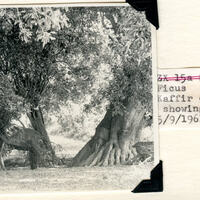 - Caption: "Beneath the Ficus tree at Kaffir drift on the Great Fish River, showing the four trunks. 5/9/1961."