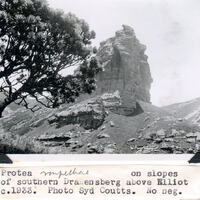 - Caption: "Protea roupelliae on slopes of southern Drakensberg above Elliot. c.1933. Photo Syd Coutts."
