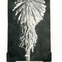- Caption: "Kniphofia head showing the dead florets below and the unopened buds above."