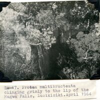 - Caption: "Protea multibracteata clinging grimly to the lip of the Magwa Falls, Lusikisiki. April 1964."