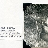 - Caption reads: "Close-up of Giant Strelitzia showing three heads, each emerging at right angles to the other. Kei Mth. Komga. Oct. '63."