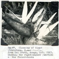 - Caption reads: "Close-up of Giant Strelitzia, S. nicolai from Kei Mouth, Komga. Oct. 1963. Showing the right-angled junction of the flower-heads."