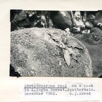 - Caption reads: "Streptocarpus rexi on a rock in Kologha Forest, Stutterheim. December 1960."