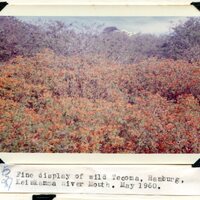 - Caption reads: "Fine display of wild Tecoma, Hamburg, Keiskamma River Mouth. May 1960."