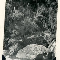 - Caption: "Arundinaria tessellate patch (dead) in bush at side of Bushmans River, below Witteberg, Giants Castle Reserve. Feb. 1961."
