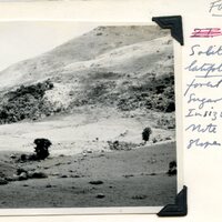 - Caption "Solitary Podocarpus latifolius left exposed by forest recession. Note relief forest on slope. 14-12-1959."