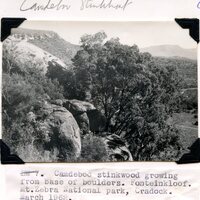 - Caption "Camdeboo stinkwood growing from base of boulders. Fonteinkloof. Mt. Zebra National park, Cradock. March 1962."