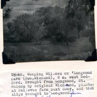 - Caption "Weeping willows on 'Longwood' farm, Geo. Wienand, 6 m. west Bedford. Brought from Longwood, St. Helena by original Wienand, planted at Bellevue farm next door and then slips brought to 'Longwood' farm next door to Bellevue."