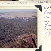 - Caption "Pirie Forest. Looking down over Maden and Rooikrans Dam from Sandile's krans. 07-07-1959."